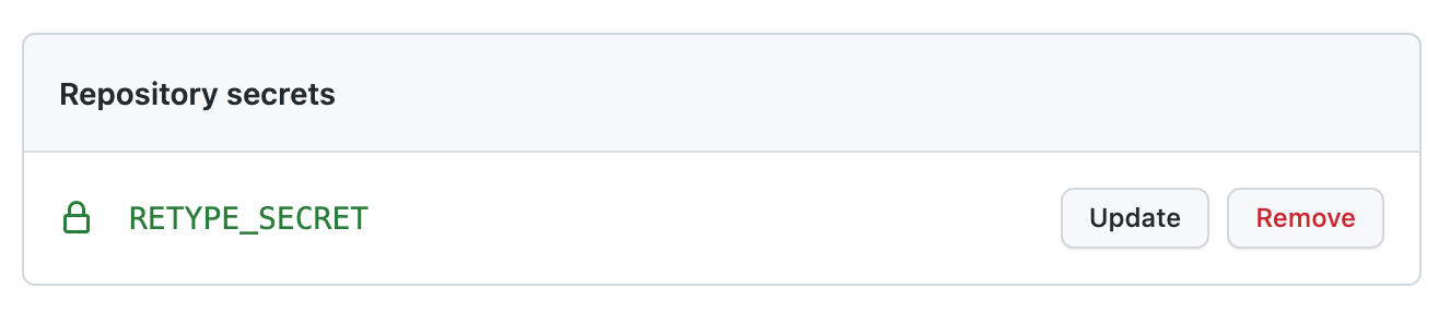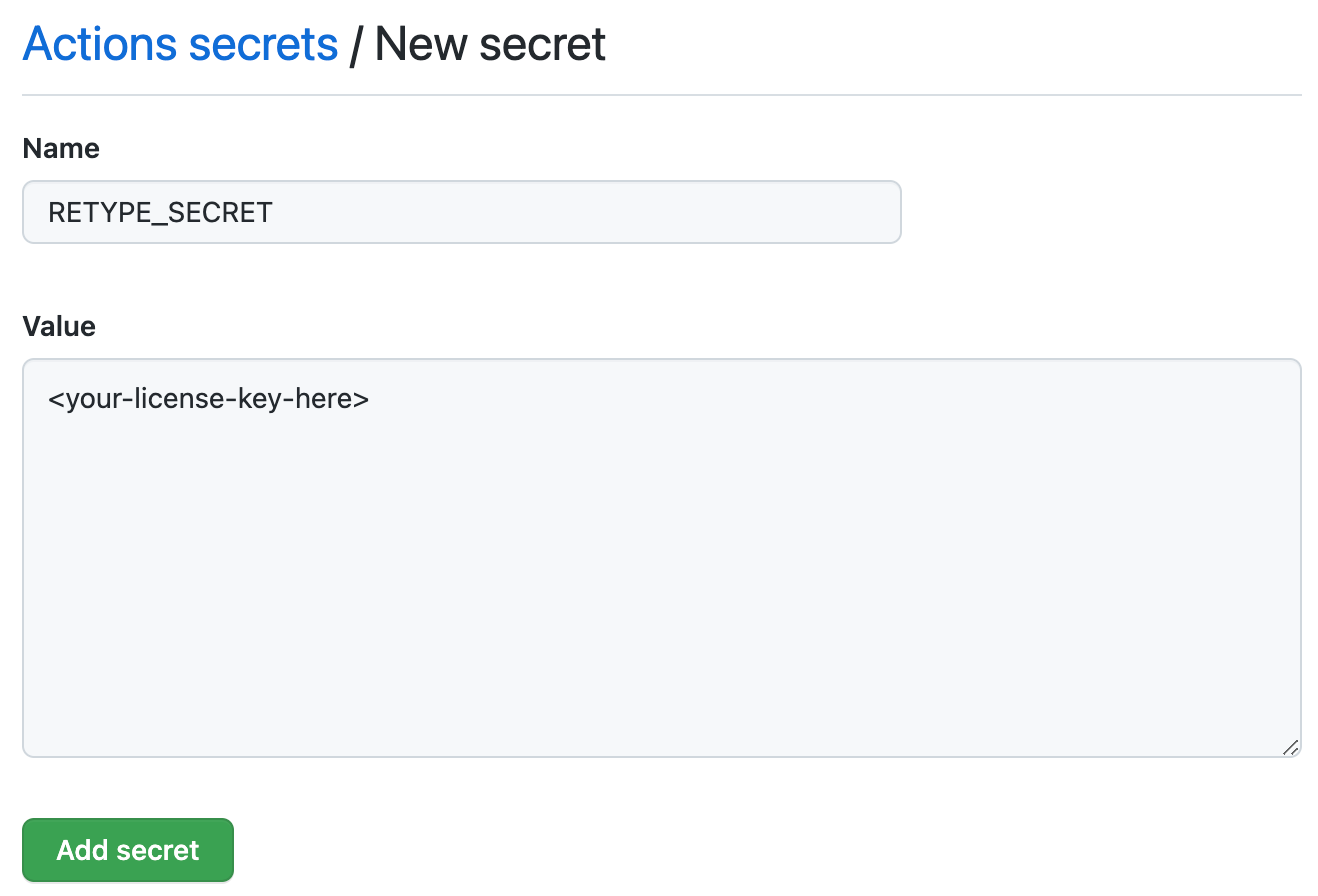 The RETYPE_SECRET configuration must also be added to your .github/workflows/retype.yml file.