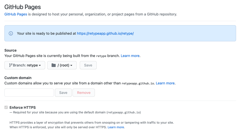 Hosting your Retype built website on GitHub Pages is free and simple to setup.